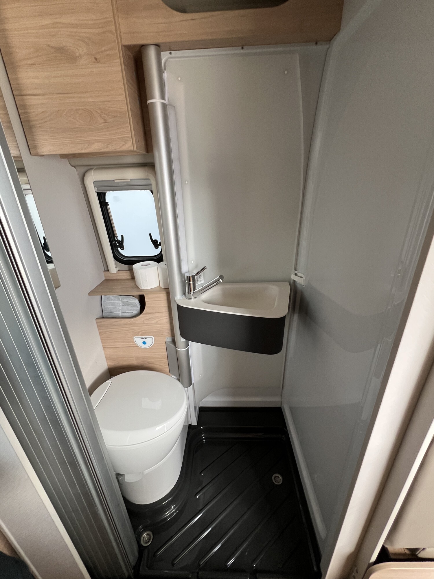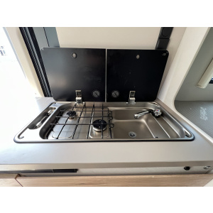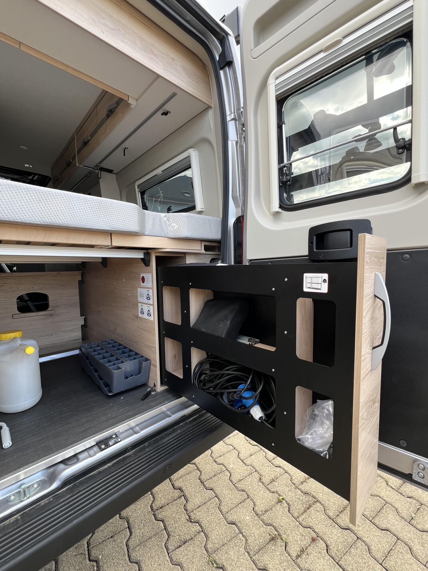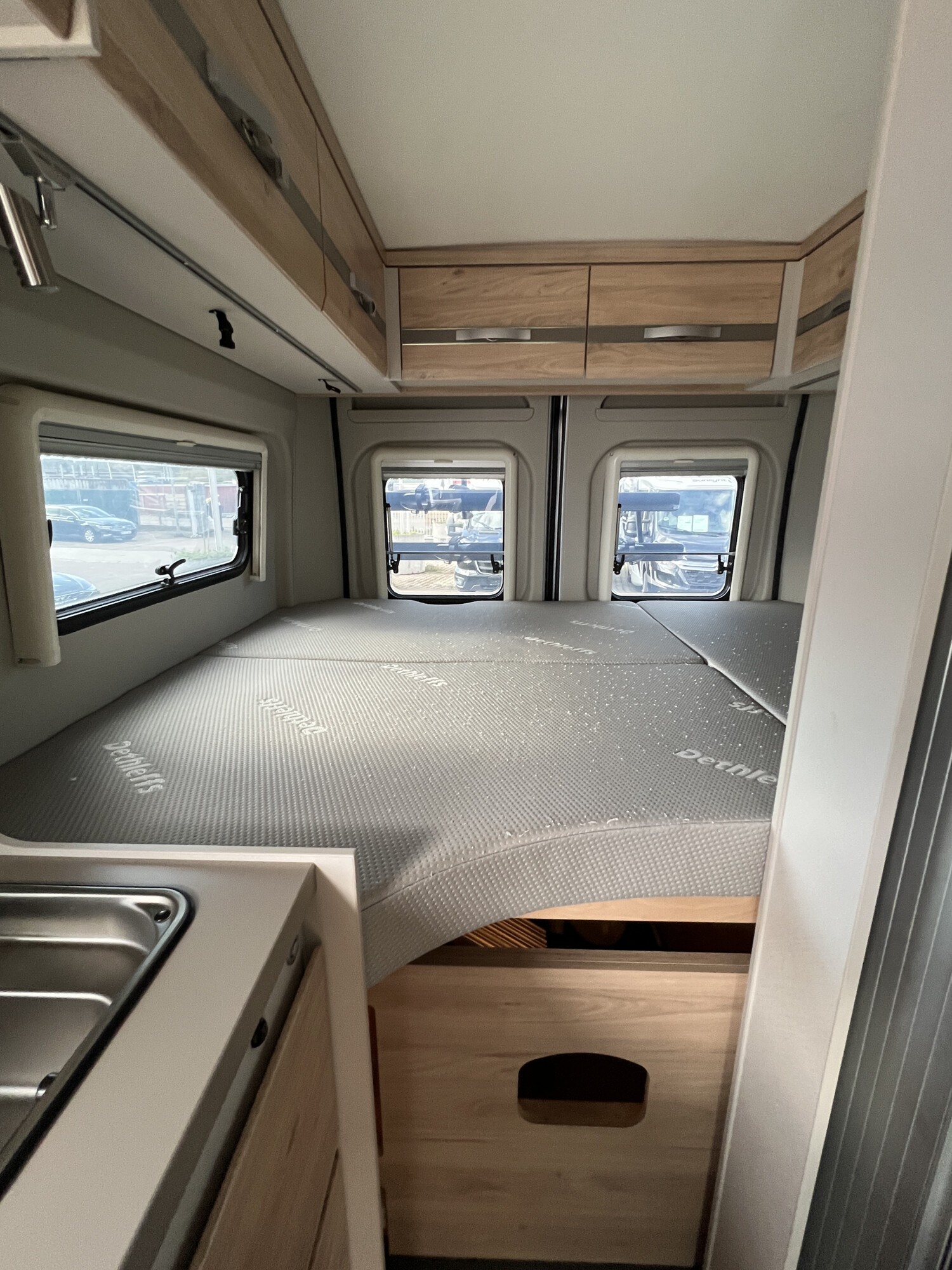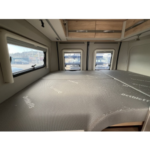 • Aufstelldach schwarz, vorne komplett zu öffnen inkl. elektrischem Schließassistenten, Fliegengitter, Schwanenhalsleuchte und USB-Steckdose, mit hochwertiger Matratze