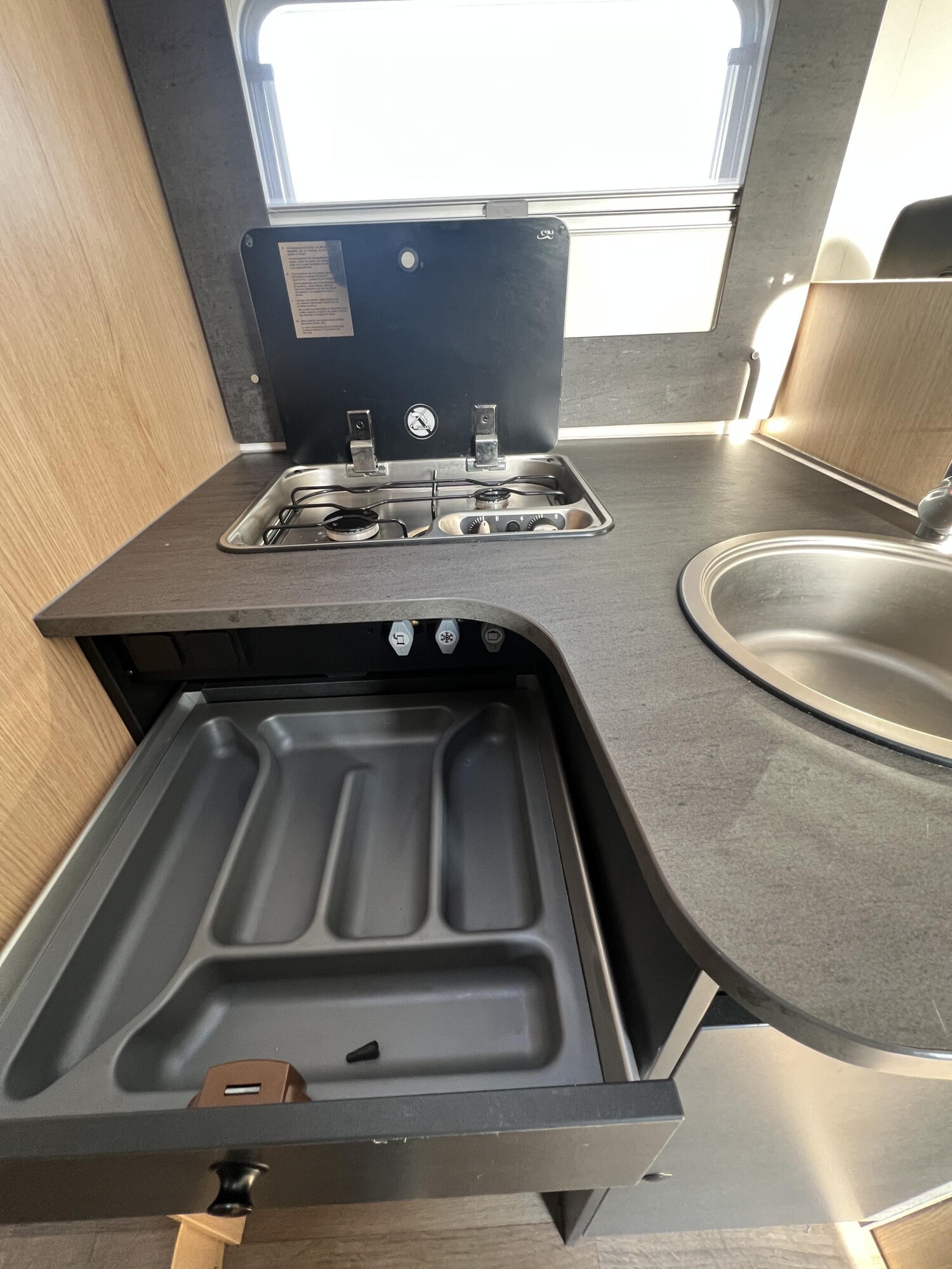 - Basic Paket (Bridge Light, Komfort Eingangstür mit Fenster, Fliegengittertür (einteilig), Panoramadachhaube über Küche, Klarglasdachhaube 40x40, Kabelvorbereitung für Rückfahrkamera)